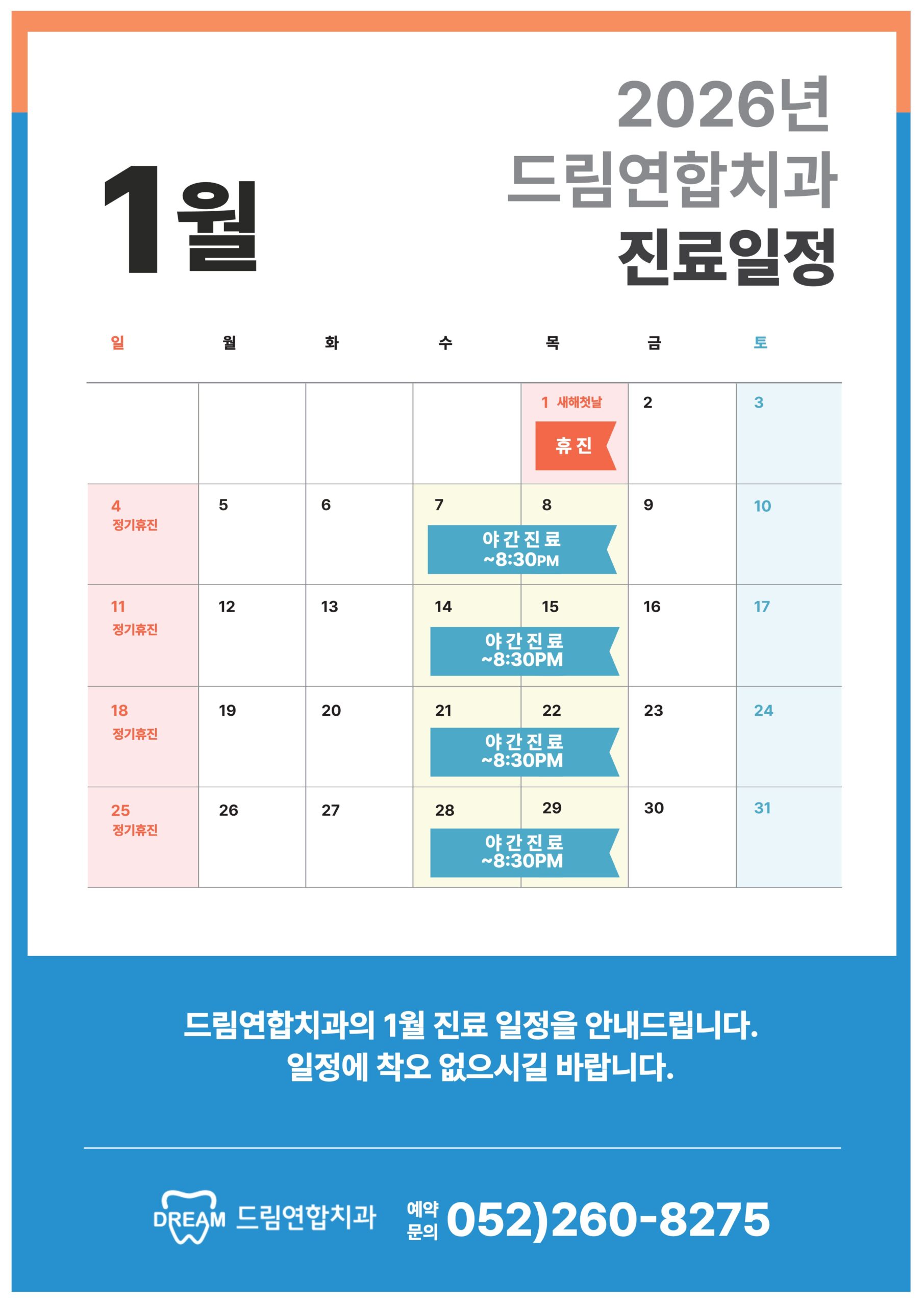 2026년 1월 진료 일정 안내