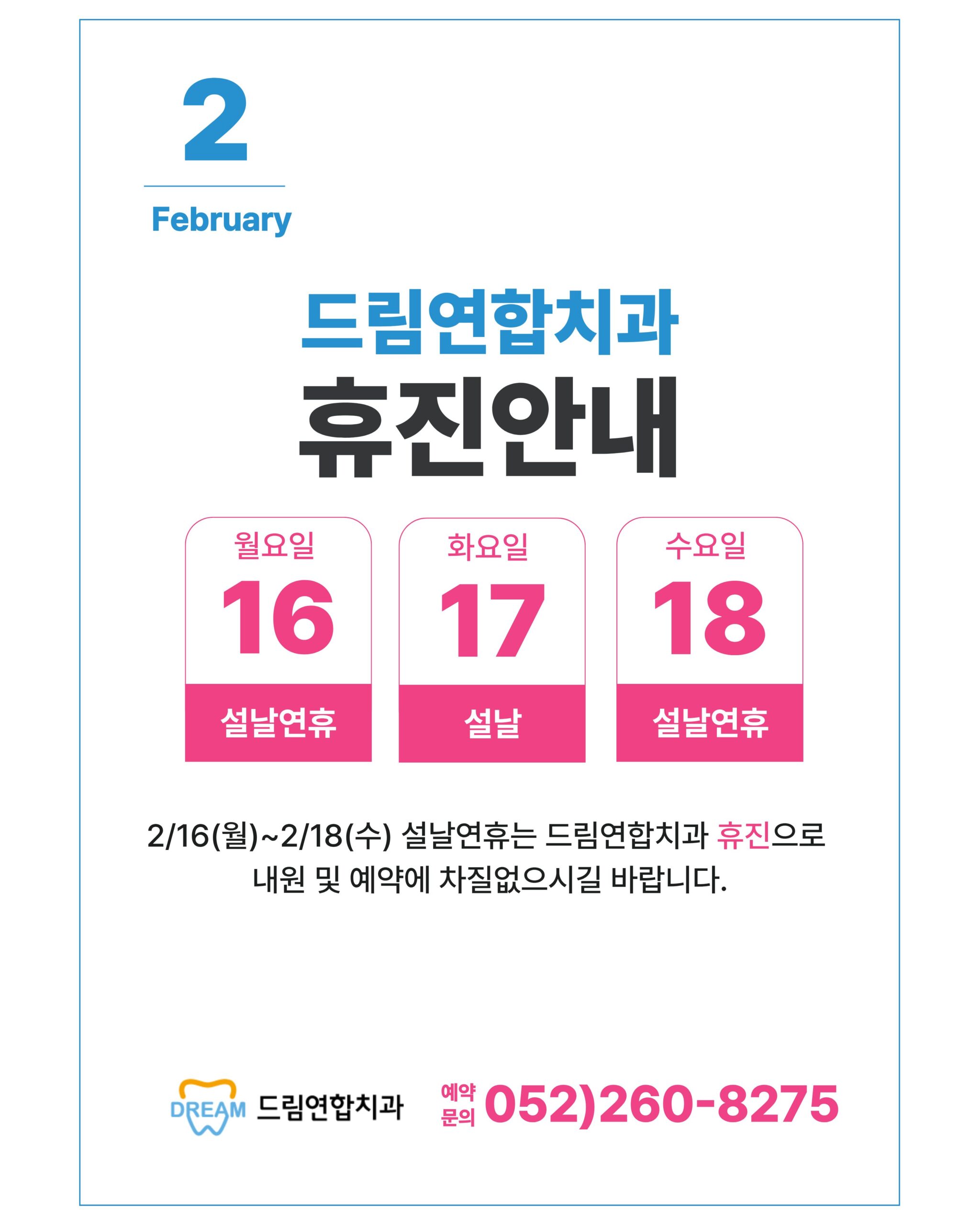 2026년 2월 설날 연휴 휴진 안내